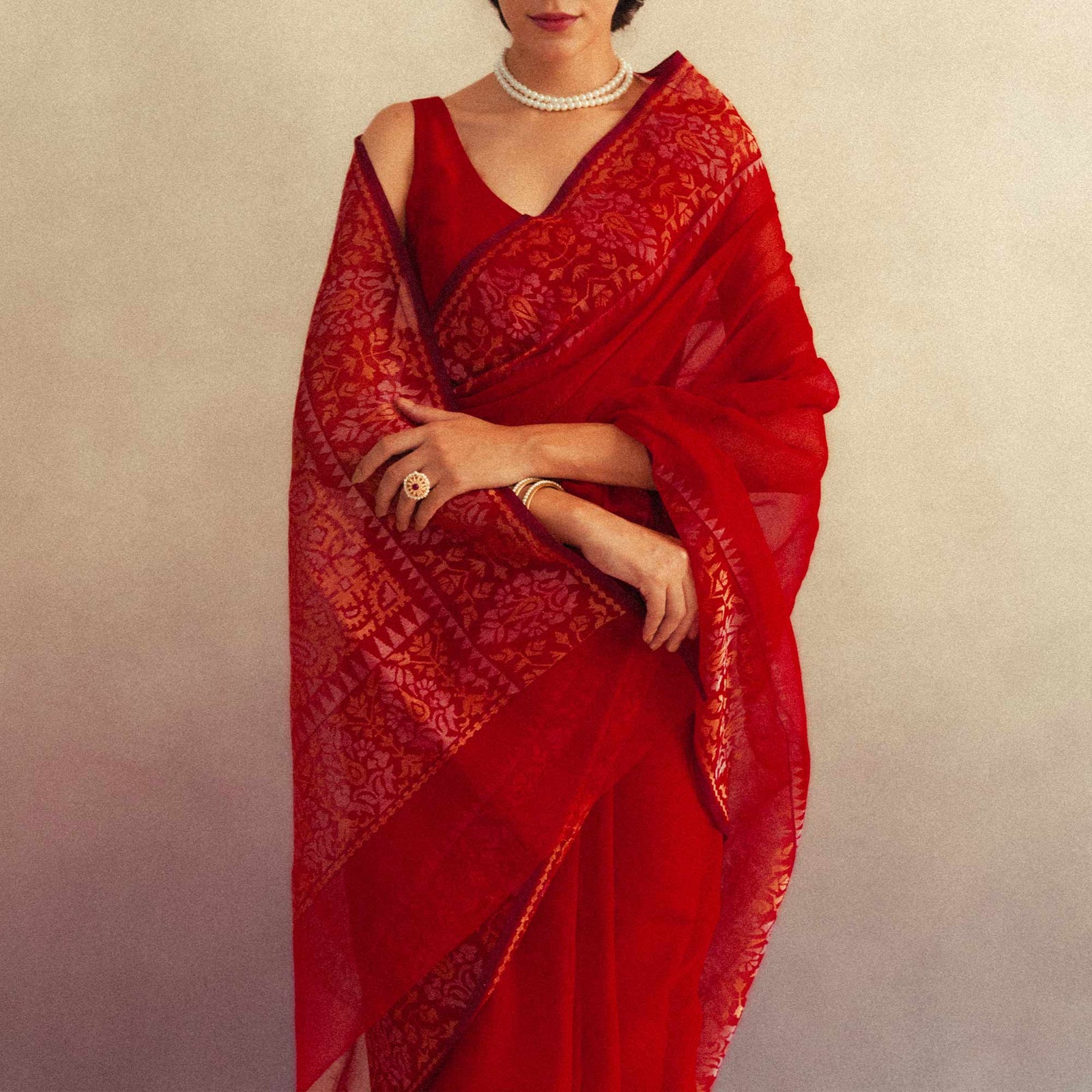 Many-hued yarns spun like verses on a silken parchment and patterns woven to the soft cadences of the loom, a Tilfi saree is a weaver's poem.