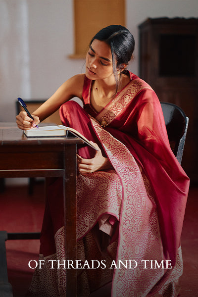 No garment evokes images of India more indubitably than the saree, and certainly, no other culture’s clothing has remained in style longer. Worn by women in the Indian subcontinent for centuries, the saree has carved a niche for itself through its aesthetic appeal and adaptability. Produced in various textures and patterns, this single stretch of fabric, ranging from 3.5 to 9 yards, has the exceptional quality of being open to creative inspirations.