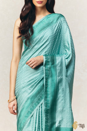 Aquamarine Pure Soft Satin Silk Banarasi Handloom Saree