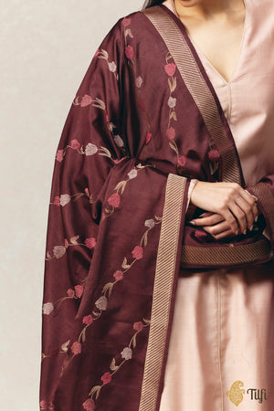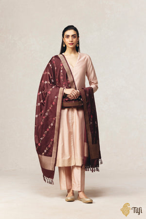 Combining the softness of silk with the warmth of Pashmina wool, this dupatta has been handcrafted with innovative Banarasi artistry. Graceful tulip motifs sway throughout the drape, suffusing it with the blooming elegance of spring.