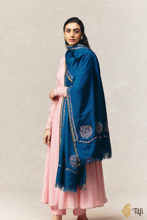 Navy Blue Pure Silk by Wool Kadwa Meena Border Dupatta