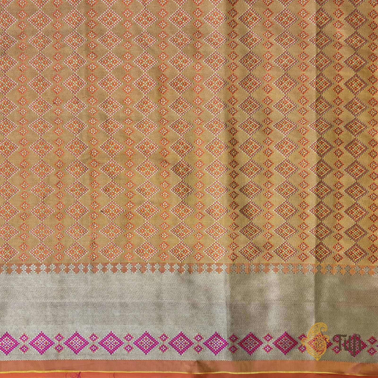 Speciality - A beautifully handwoven allover jaal with multicoloured Tanchoi Meenakari, inspired by the rich patola patterns of Gujarat. Tanchoi ensures that there is no float on the back of the saree.