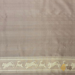 Pre-Order: 'Peacock on the Rampart' Light Rosy Brown Pure Katan Silk Banarasi Handloom Saree