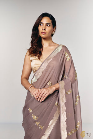 Collection note - The night sky becomes a canvas for Banaras’ enduring weaves. Fluid and weightless, georgette lends itself to the quiet grace of twilight, while fine kadhua artistry brings nocturnal blooms and celestial motifs to life. Moonflowers and jasmines, constellations and shifting phases of the moon, each motif emerges in zari and meenakari, a soft echo of dusk and dawn.