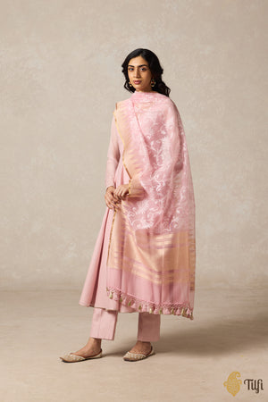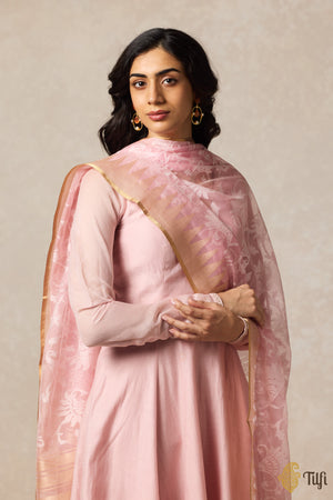 Simplicity is the keynote of all true elegance. This is a lovely dupatta in pure kora silk net with fine Banarasi cutwork, a floral jaal and zari borders. Simple, yet breathtaking!