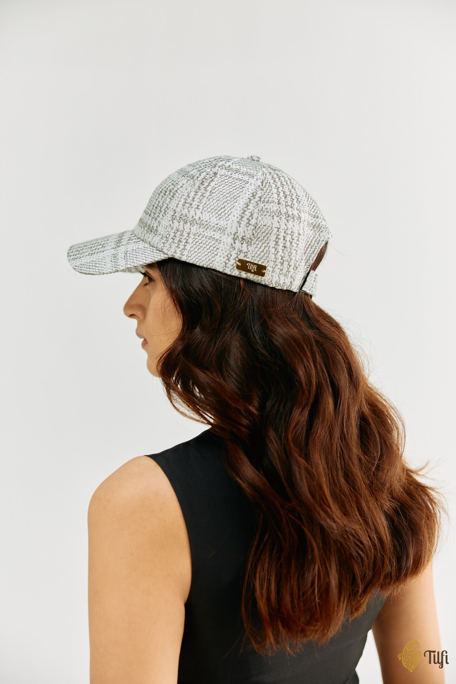 A contemporary silhouette shaped in handwoven silk, this plaid cap features a meticulous checkered expanse in a Tanchoi weave, set in soothing hues. Seamlessly blending heritage, fluidity, ingenuity and ease, this statement accessory is crafted to elevate any attire.