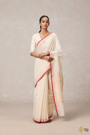 Speciality - Dainty, handwoven bootis set against an elegant zari border make this an arresting handloom classic. A versatile and enduring handwoven treasure.