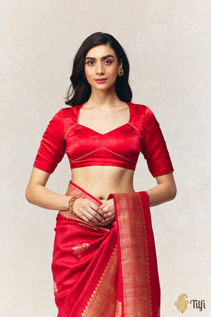 A stunning saree accompaniment in a flattering silhouette. Delicate tissue detailing elevates the beauty of this lustrous silken piece. Completed with gold piping across its composition.