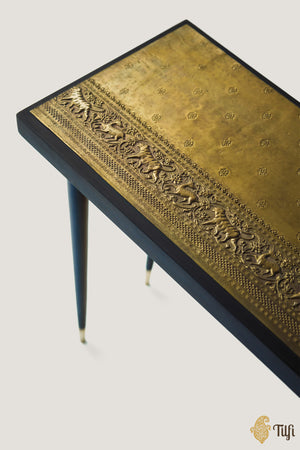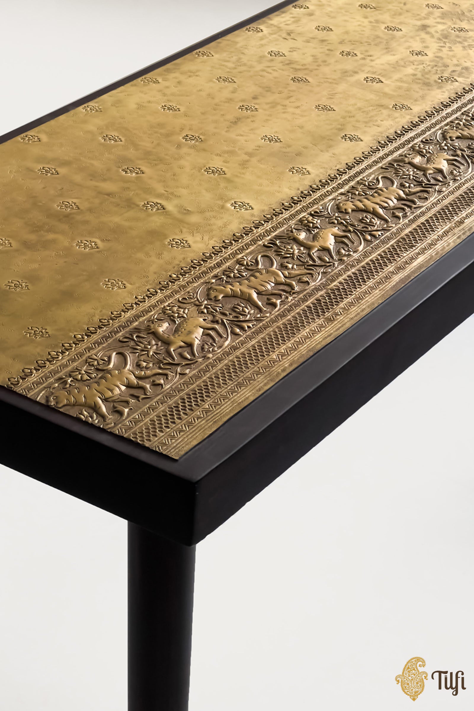 A confluence of tradition and artistry. With a metal surface intricately handworked with the classic Shikargah pattern, this console table evokes the splendour of pure Banarasi craftsmanship. A tapestry of regal flora and fauna, it is a piece of art steeped in heritage.