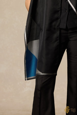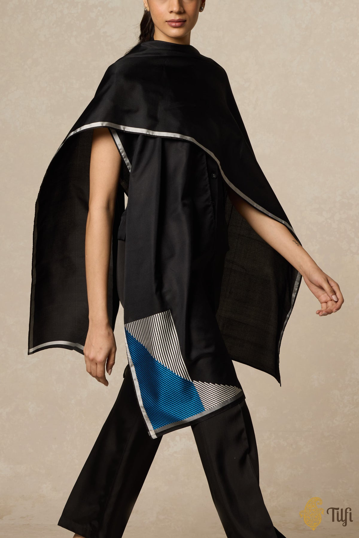 A reimagination of the koniya motif through the lens of linearity. This stylised stole takes shape in the natural fall of the fabric, with its motif playing with the rhythm of lines—an elegant shift in perception and form.