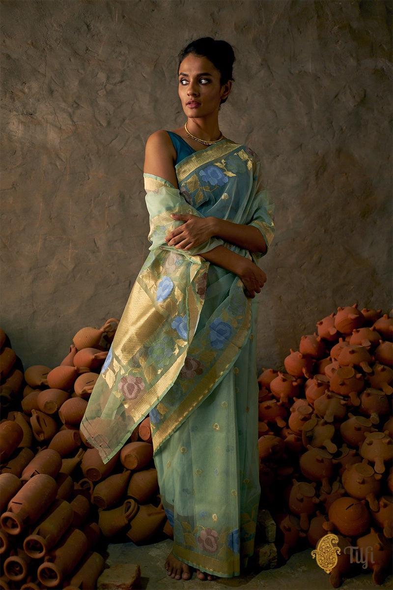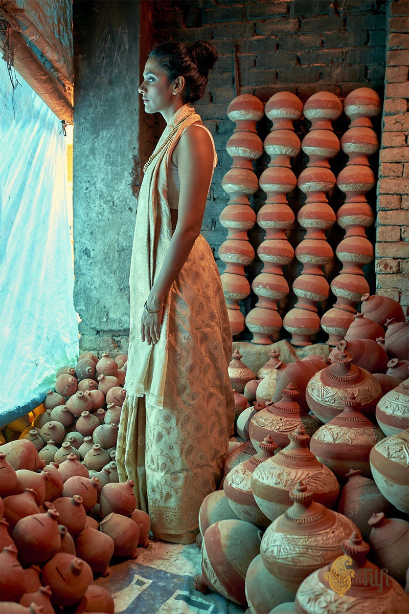 A celebration of individuality, imperfections and the inherent strength of today’s woman. A collection of exquisite Banarasi weaves in understated tones and defined drapes. Handwoven in the finest technique for the ones who are strong yet kind, fearless yet grounded and spirited yet poised.