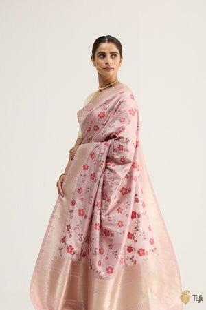 Symbolic of abundance and quiet strength, the pomegranate blossom finds new life in this silken weave. Woven in meenakari with fine zari detailing, the delicate forms of the anar flower bloom across the fabric in rhythmic succession. A celebration of renewal and rootedness, this saree draws from a motif both timeless and deeply grounded in the Indian imagination.