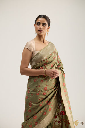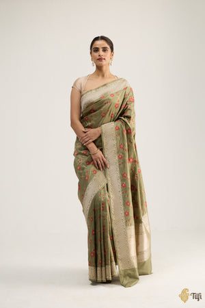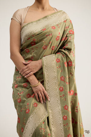 'Madulai' Light Green Pure Katan Silk Banarasi Handloom Saree