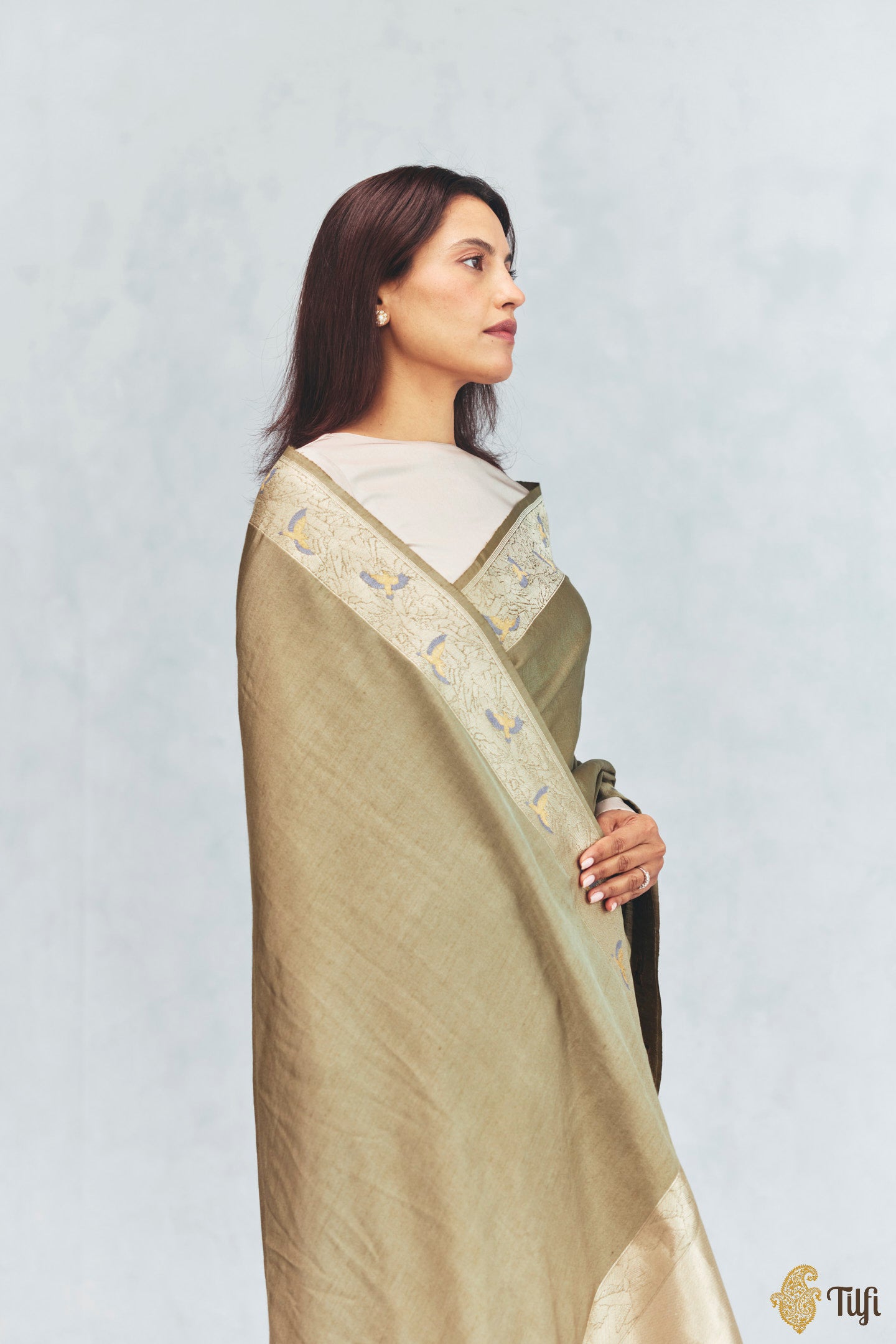 - Collection Note: Tilfi’s Silk Wool collection extends Banarasi into new material terrain, evoking the hush of frost-kissed branches, the flight of birds across open skies, and the gentle geometry of snow-laden landscapes. Woven with the finest Pashmina yarn and pure silk, the textile finds a poised balance between softness and structure. Through meticulous Kadhua craftsmanship, the collection becomes a study in muted winter minimalism, where tradition evolves by deliberate design. Composed in subtle contrasts, its narrative is defined as much by absence and stillness as by abundance and vibrancy.