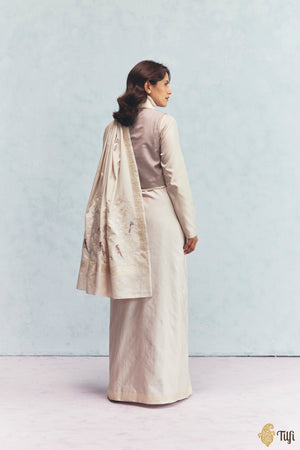 'Winter Song' Off White Silk-Pashmina Wool Banarasi Handloom Saree