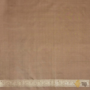 In a fresh take on Banarasi Shikargah art, this brown satin silk, plain-bodied drape features a leap of leopards moving along its borders, surrounded by dense jungle flora. A Banarasi classic featuring masterful Meenakari work, and a zari laden pallu.
