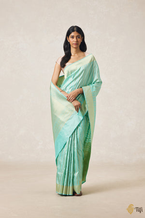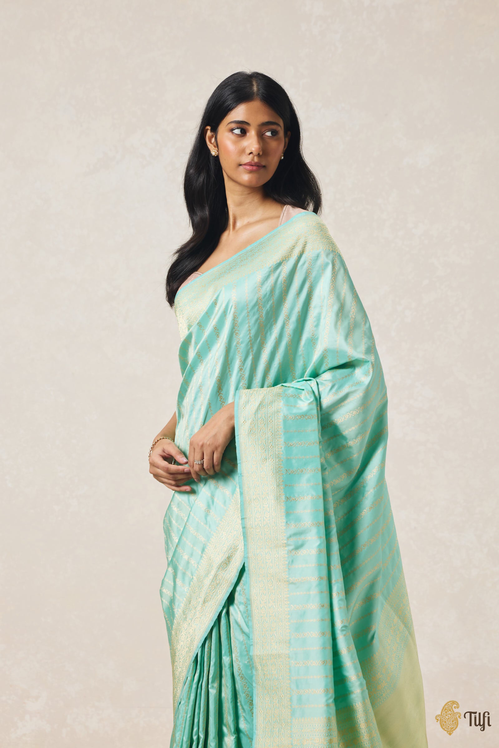 Sea Blue Pure Katan Silk Banarasi Handloom Saree