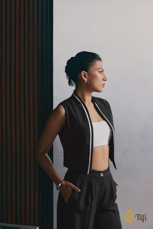 Featuring a layered construction, this blouse deconstructs traditional proportions to offer a sharp, graphic contrast that mirrors the clarity of our Black & White collection. The nature of this blouse allows for a personalised expression of style, transitioning effortlessly from a structured saree accompaniment to a singular contemporary piece.