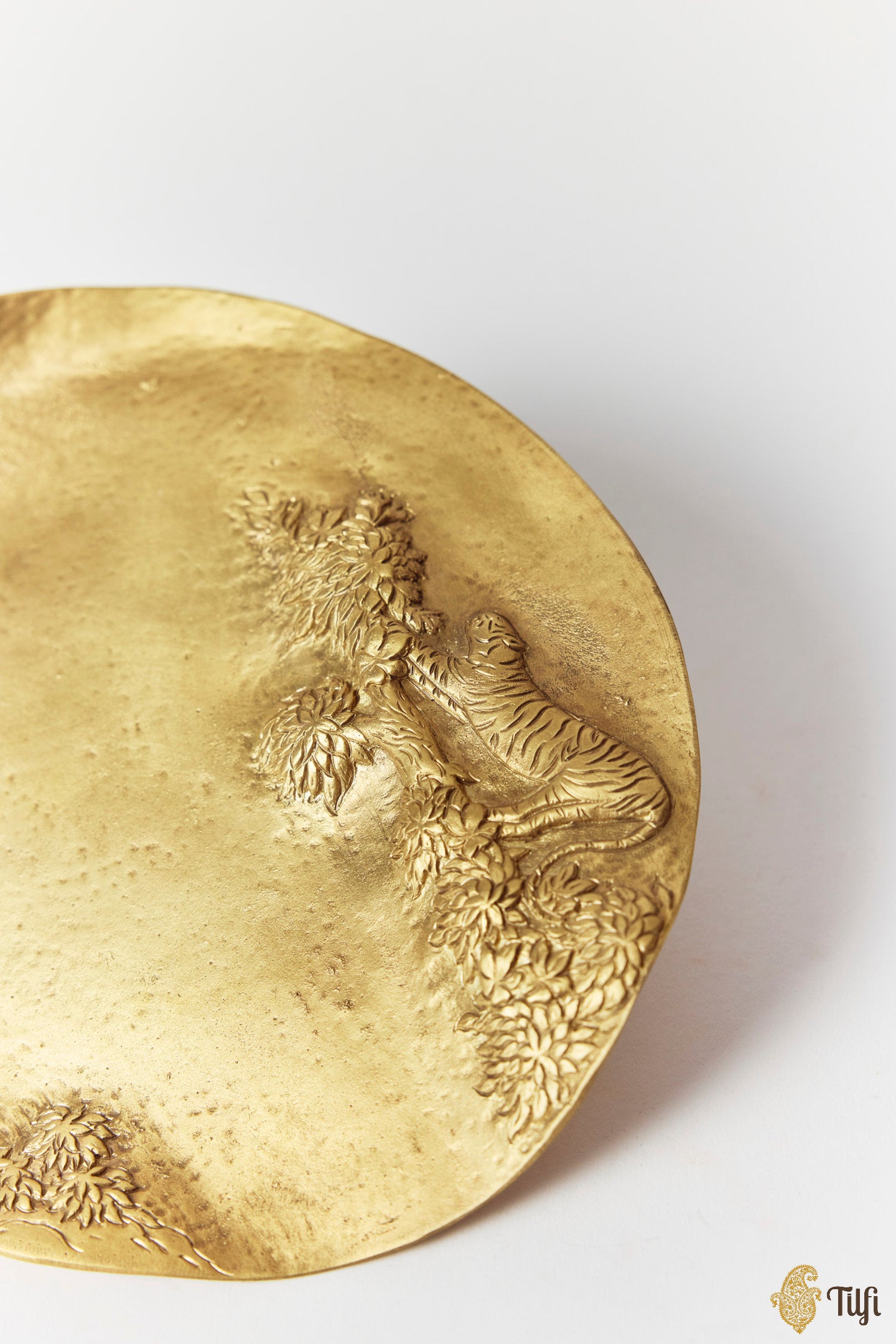 Collection Note -Rooted in the storied vocabulary of Banarasi textiles, Tilfi’s Shikargah collection of Art & Collectibles finds new expression in hand-crafted brass. Each object is shaped using age-old handcraft techniques, including Banarasi metal repoussage. Scenes of tigers, deer, birds, and foliage unfold across the surface, beyond ornamentation as a thoughtful play between form and function. Undulating planes recall the terrain of the wild, while flatter surfaces lend themselves to utility. These creations live at the confluence of art, craft, and design: singular objects of beauty and purpose, marked by Tilfi’s sensibility of inheritance and reinvention.