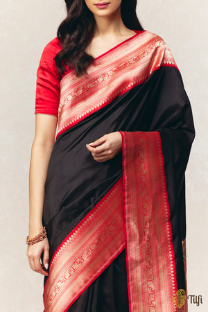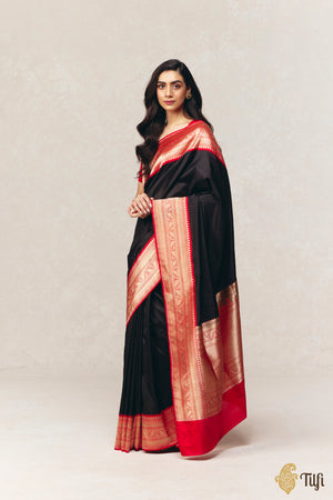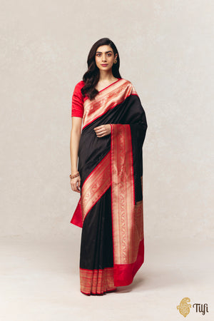 Color - A stunning shade of Black with a contrasting Red border and aanchal