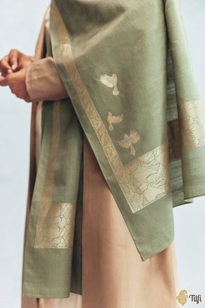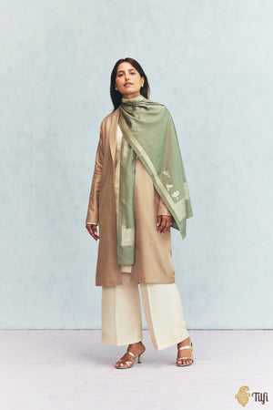 'Celine' Light Sage Silk-Pashmina Wool Banarasi Handloom Stole