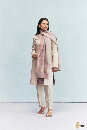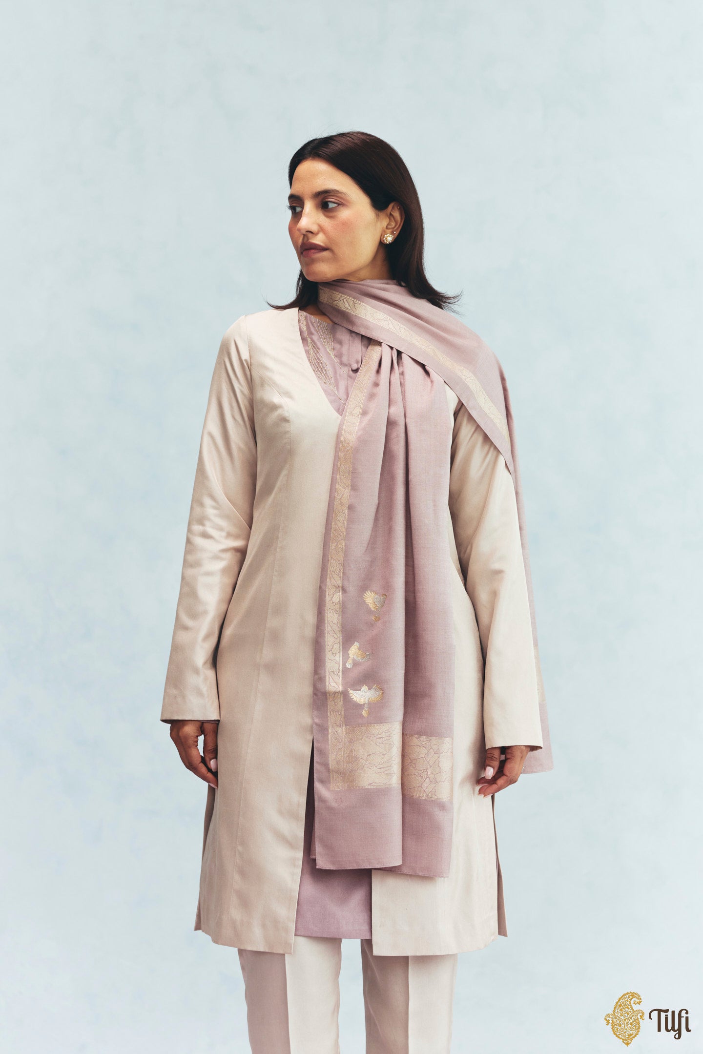 - Collection Note: Tilfi’s Silk Wool collection extends Banarasi into new material terrain, evoking the hush of frost-kissed branches, the flight of birds across open skies, and the gentle geometry of snow-laden landscapes. Woven with the finest Pashmina yarn and pure silk, the textile finds a poised balance between softness and structure. Through meticulous Kadhua craftsmanship, the collection becomes a study in muted winter minimalism, where tradition evolves by deliberate design. Composed in subtle contrasts, its narrative is defined as much by absence and stillness as by abundance and vibrancy.