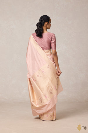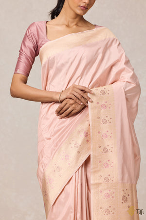 The quintessential Banarasi saree with a plain silken body and delicate floral meenakari borders and boota pallu. With its vintage inspirations and extraordinary kadhua weave, who wouldn't be charmed by this classic.