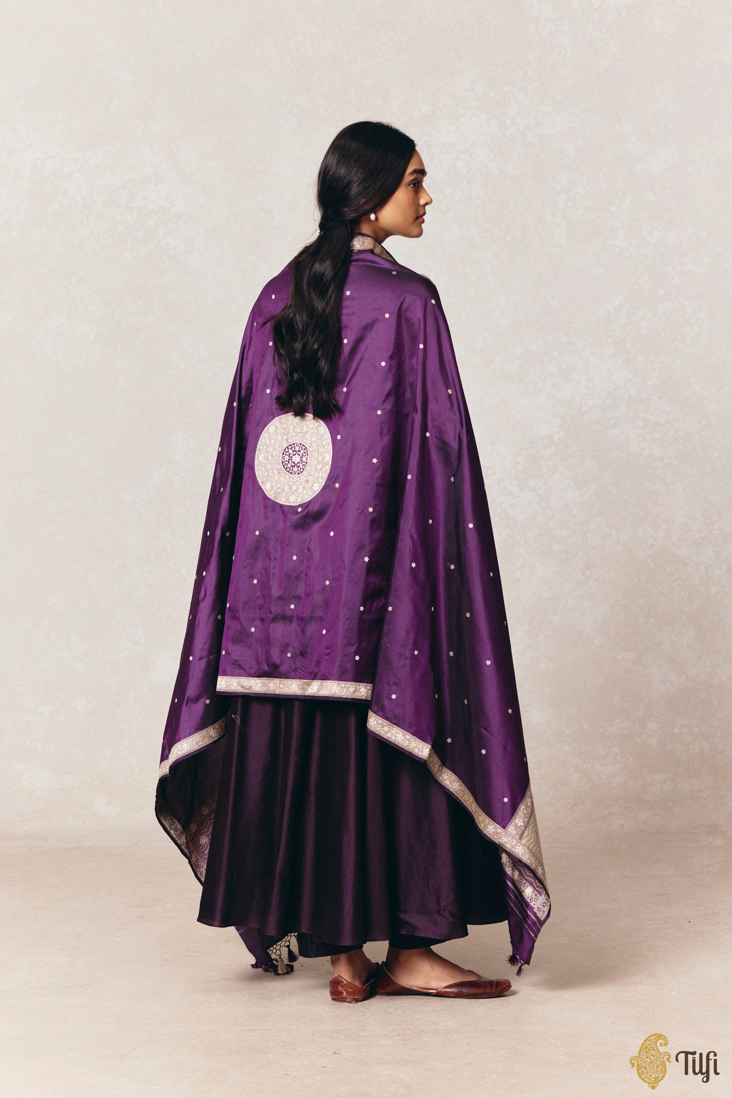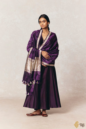 A graceful dupatta adorned with dainty roopa sona bootis and a radiant central motif of the moon. The central medallion is ornamented with lotuses in vines, while lotuses bloom in water along the pallu. Light, luminous and auspicious, this dupatta carries an ethereal charm—perfect for adding a touch of elegance and poetry to any ensemble.