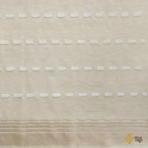 Simplicity is the keynote of all true elegance. This is a lovely saree in pure kora silk net with fine Banarasi cutwork and sleek zari borders. It features a beautiful floral thread-work pattern with a bevy of flowers. Simple, yet breathtaking!