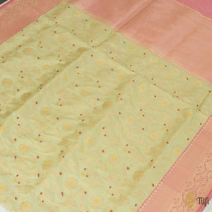 Color - A beautiful shade of light Pista Green with a contrast Pink border