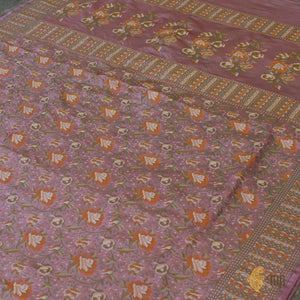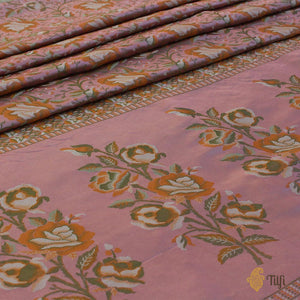 Mauve Pink Pure Soft Satin Silk Banarasi Handloom Saree