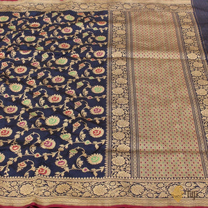 Speciality - A handwoven masterpiece with breathtaking Banarasi opulence! It has an elegant zari floral jaal with Meenakari accents.