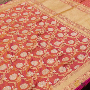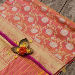 Yellow-Gulabi Pink Pure Katan Silk Banarasi Handloom Saree
