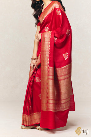 Exquisite, individually woven kadhua (Kadwa) bootis in roopa sona zari grow on a light bed of silk. This saree displays an expert blend of pure fabrics, combining the textured appearance of Tussar and the easy drape of Georgette.