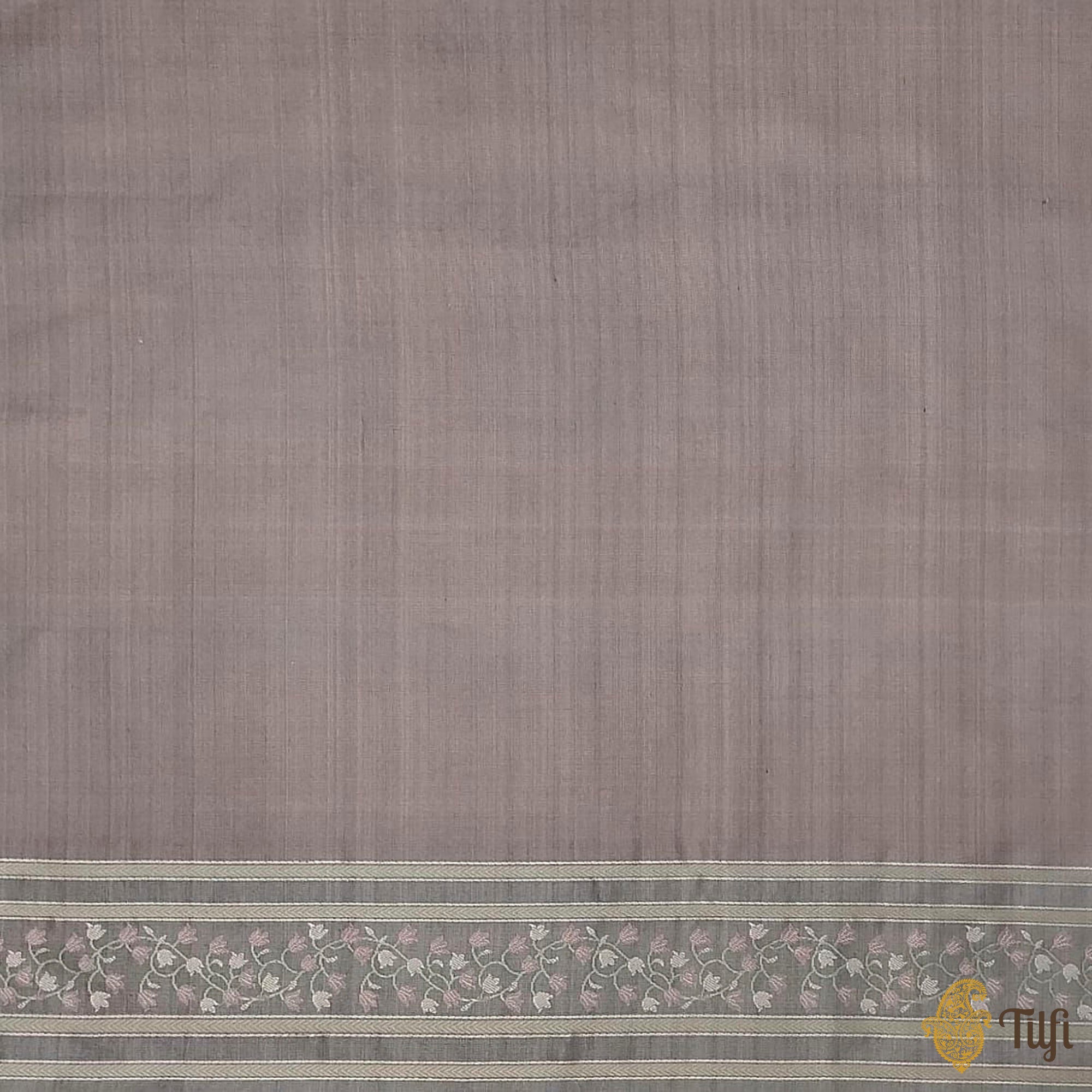 Pre-Order: 'First Bloom' Dark Taupe Pure Soft Satin Silk Banarasi Handloom Saree
