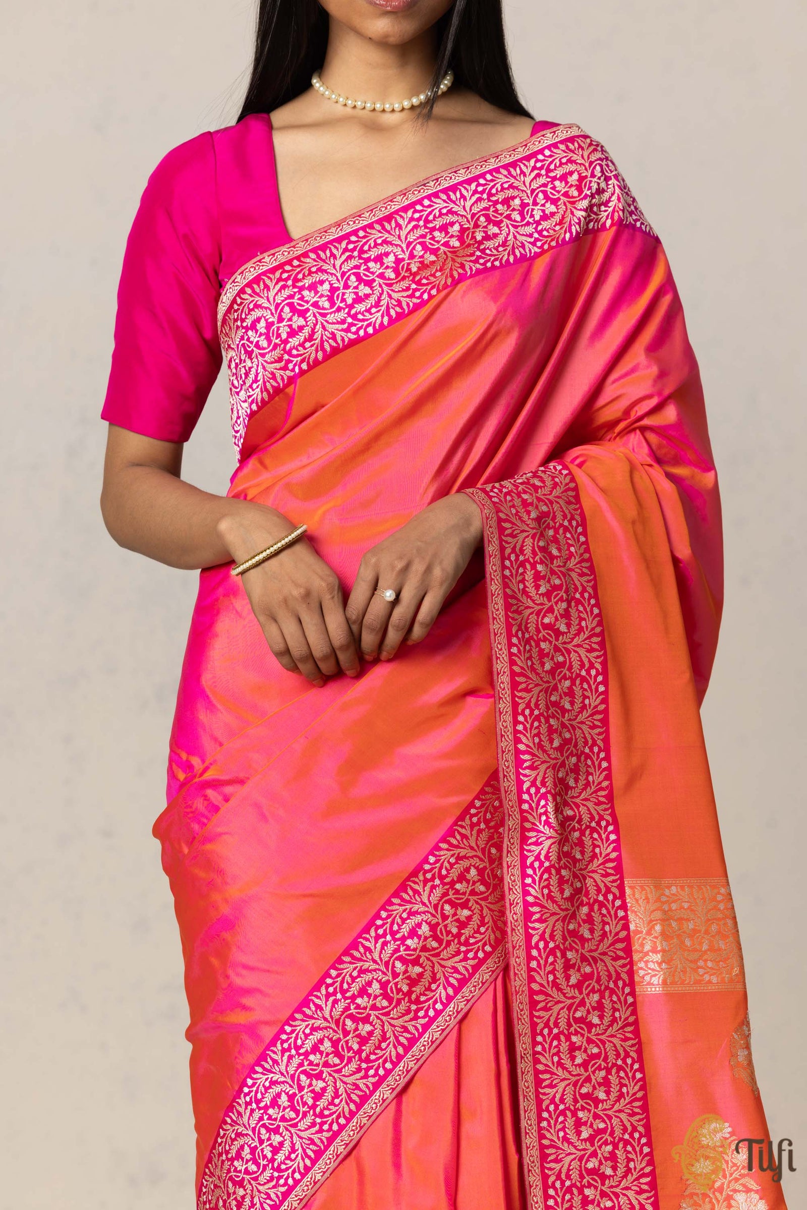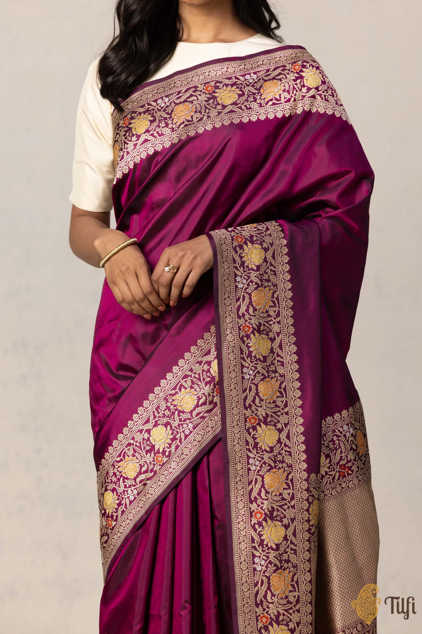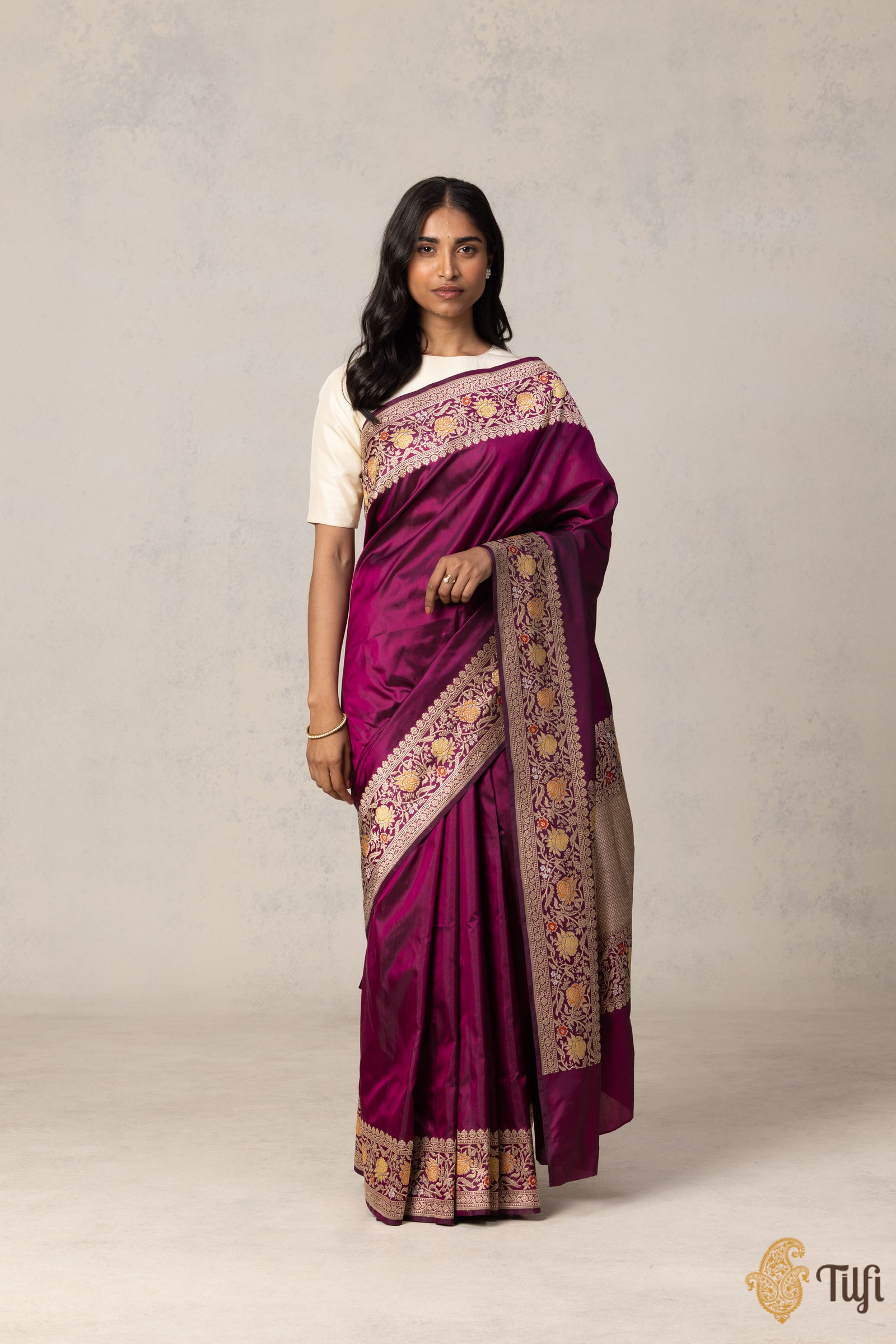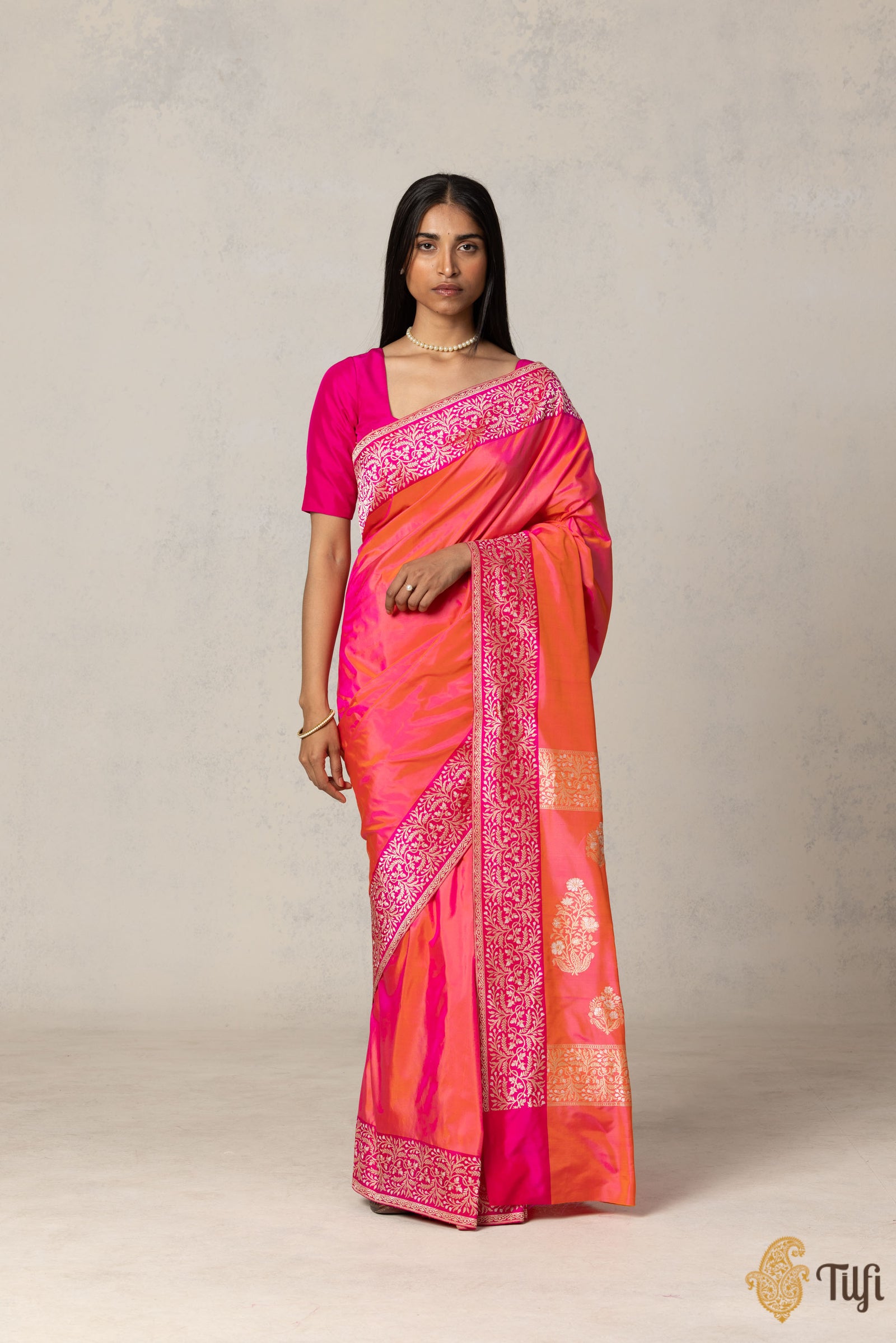 We invite you to trek through our silken rivers and immerse yourself in the beauty of the finest Banarasi craftsmanship, from the hands of Tilfi.