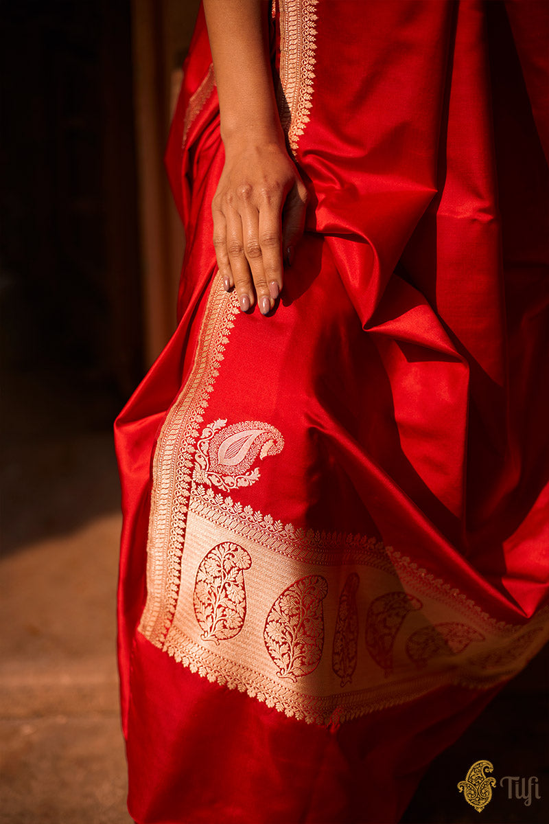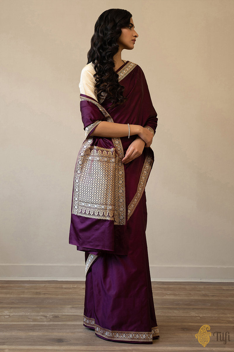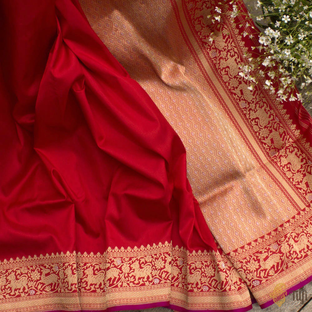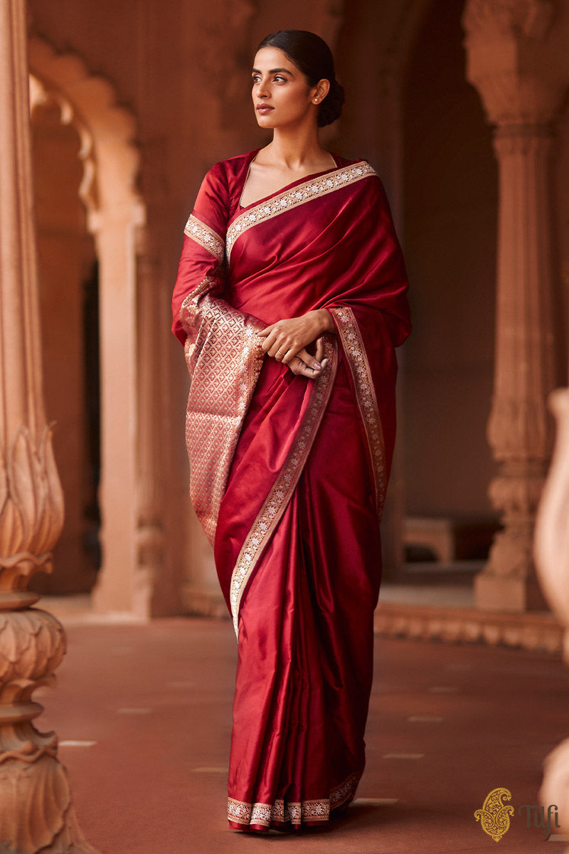 Plain-bodied sarees are notably difficult to weave. Only experienced hands can achieve the perfect evenness of texture and fall, and prepare an unblemished length. In the absence of any patterning, there is truly nowhere to hide for a novice!