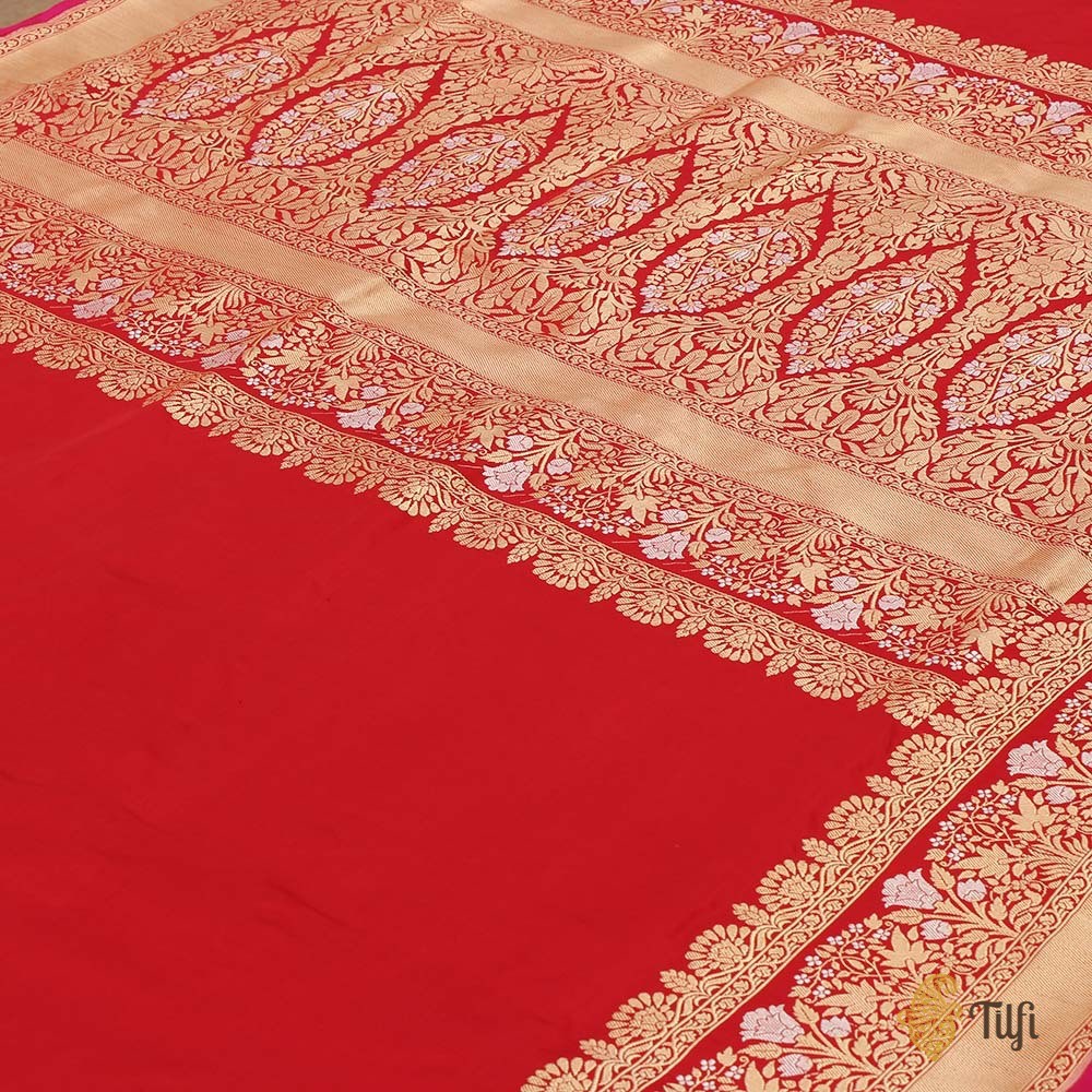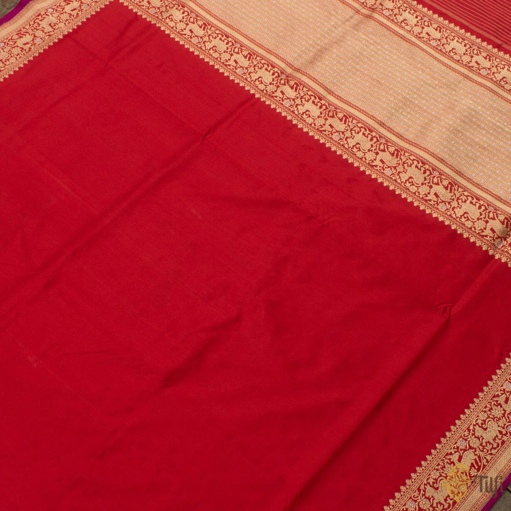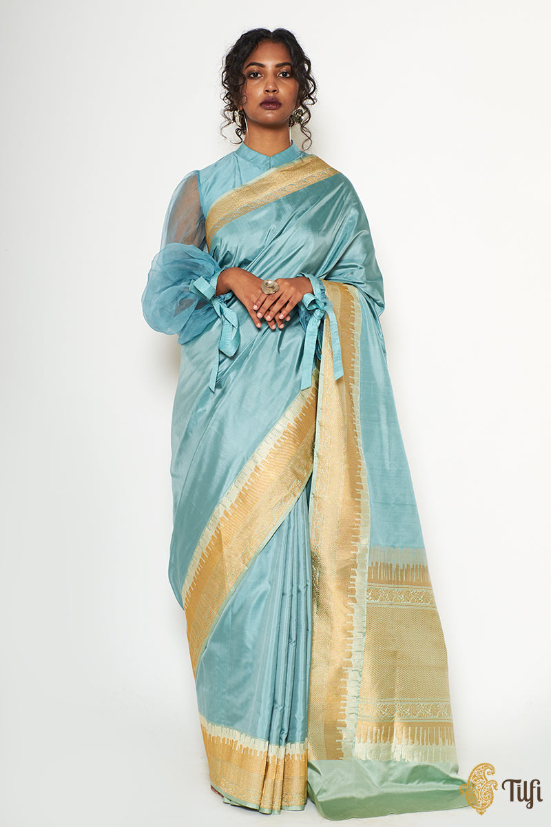 Plain-bodied sarees are notably difficult to weave. Only experienced hands can achieve the perfect evenness of texture and fall, and prepare an unblemished length. In the absence of any patterning, there is truly nowhere to hide for a novice!