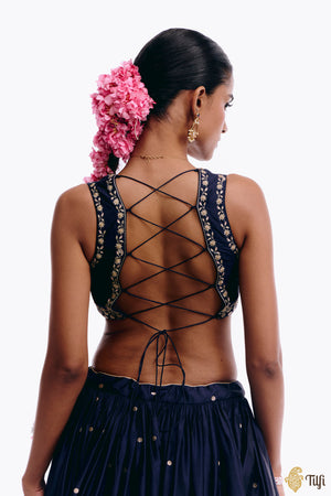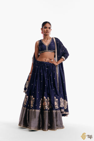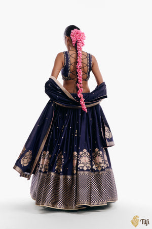 'Amreen' Blue Pure Katan Silk Banarasi Handloom Lehenga Set