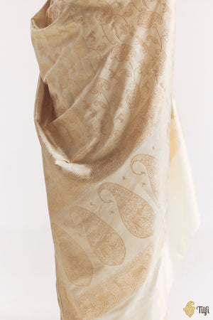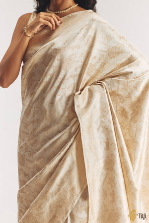 'Aranyika' Off-White Pure Katan Silk Banarasi Handloom Shikargah Saree