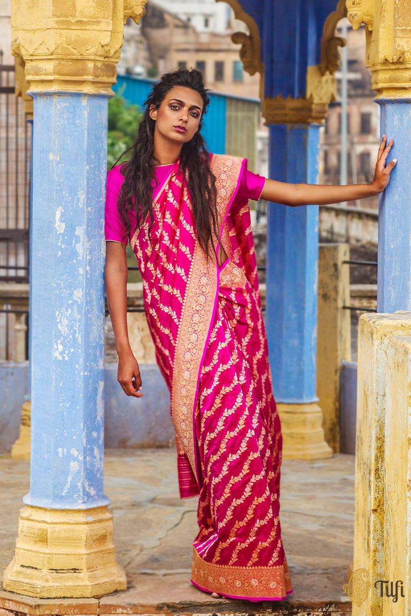 Over the years, Tilfi has crafted iconic house codes which bring a discernible refinement and character to the Banarasi. From the Varanasi skyline on a woven border to the reflections of the Ganga on a Jamdani, these are some of Tilfi’s most timeless creations.