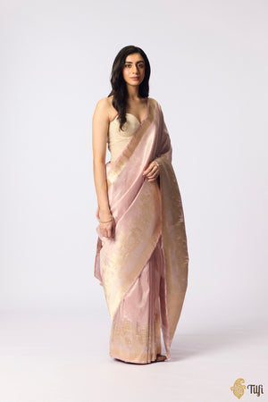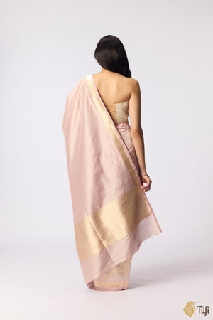 A gentle radiance plays across the fabric, recalling the Ganga at dusk, enduring, poetic, unforgettable. A handloom masterpiece, shaped by the artistry of Banaras’s finest weaver-poets.
