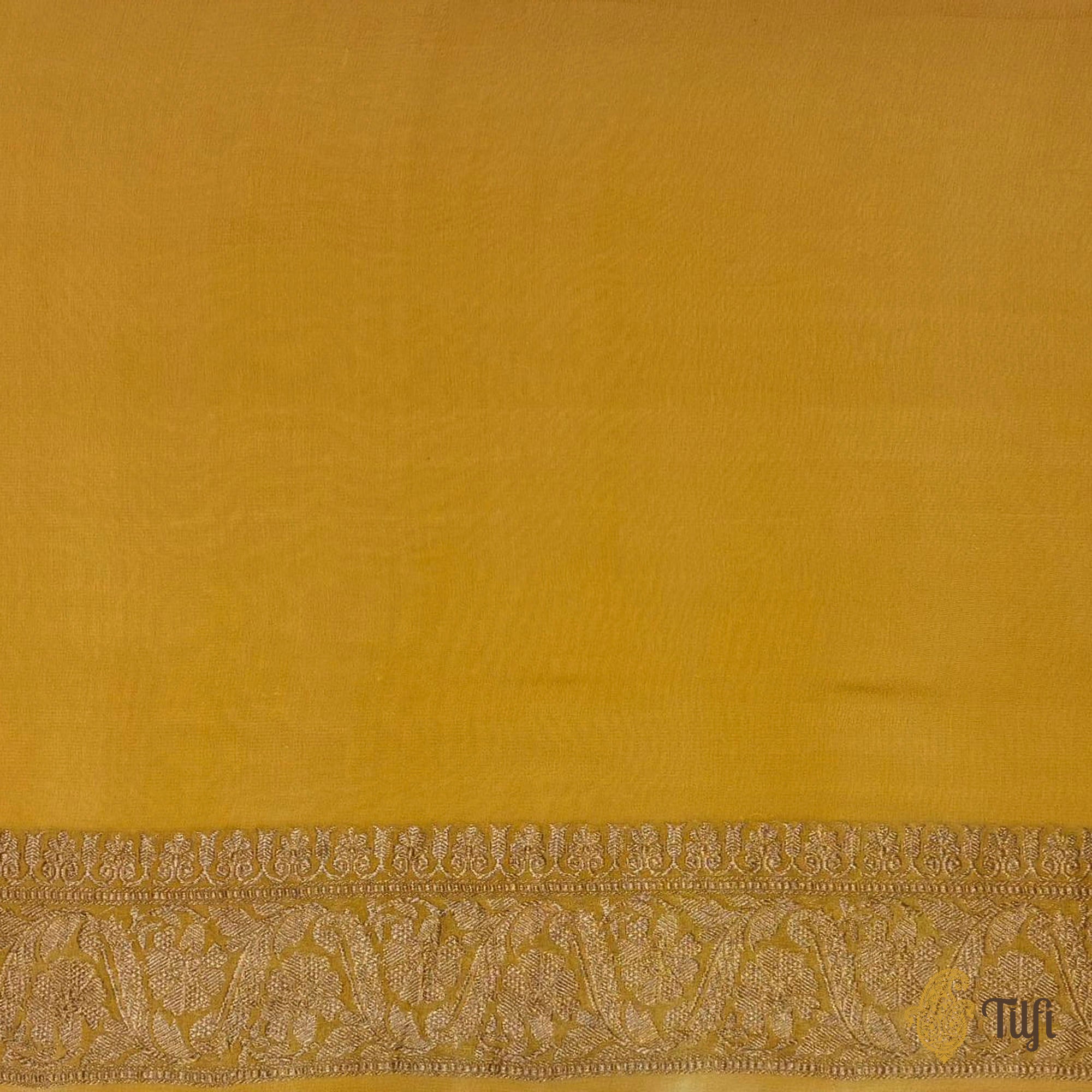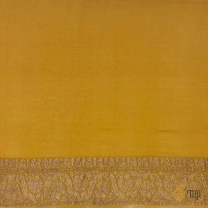 A lime green saree adorned with a painstakingly handcrafted roopa sona jangla pattern, encapsulating centuries of weaving traditions from Banaras.