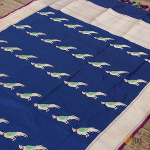Midnight Blue Pure Katan Silk Banarasi Handloom Dupatta