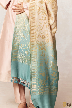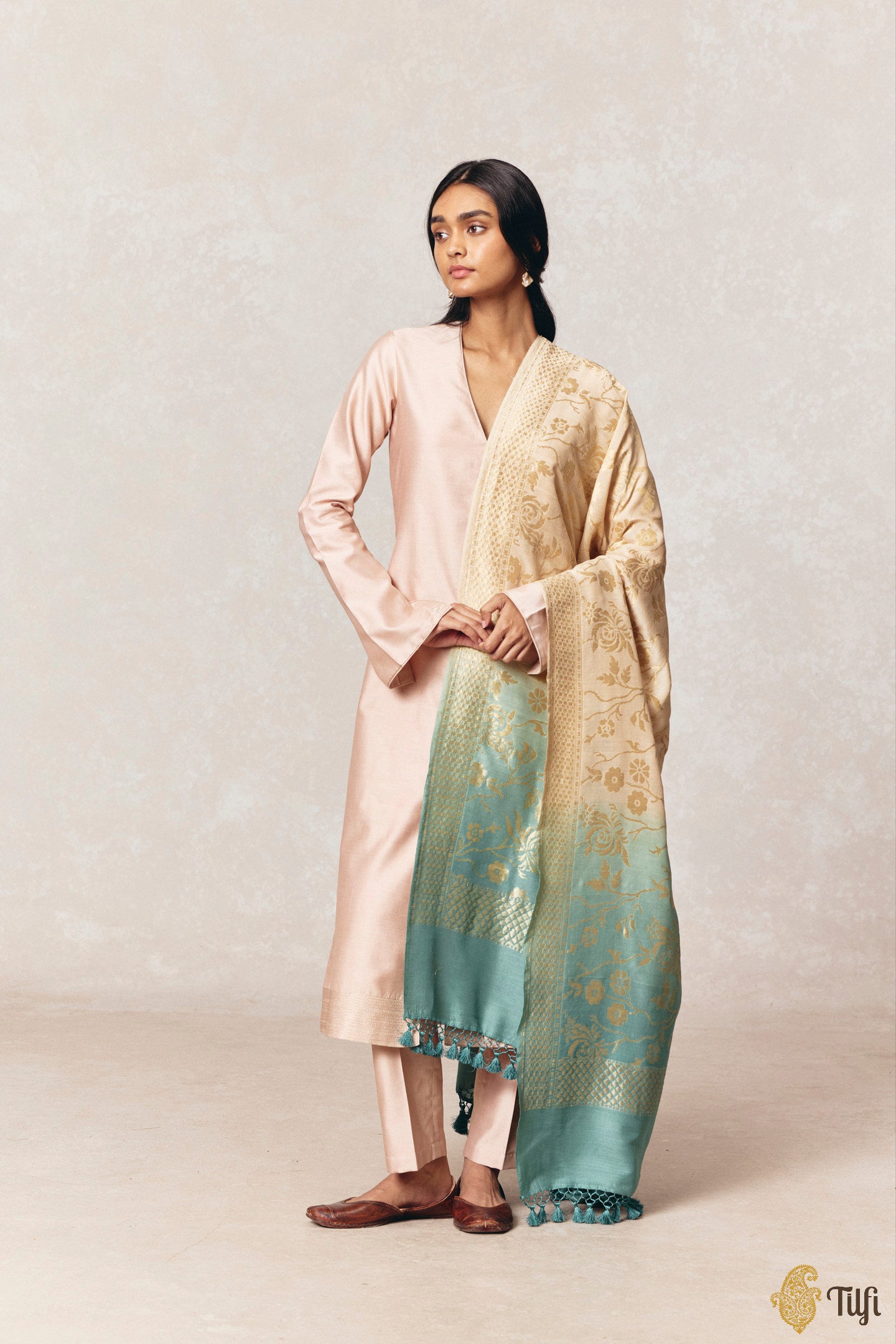 A light and versatile Banarasi dupatta with an all-over pattern of fluid vines and varying floral blossoms handwoven in gold zari.