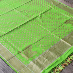 Parrot Green Pure Katan Silk Banarasi Handloom Dupatta