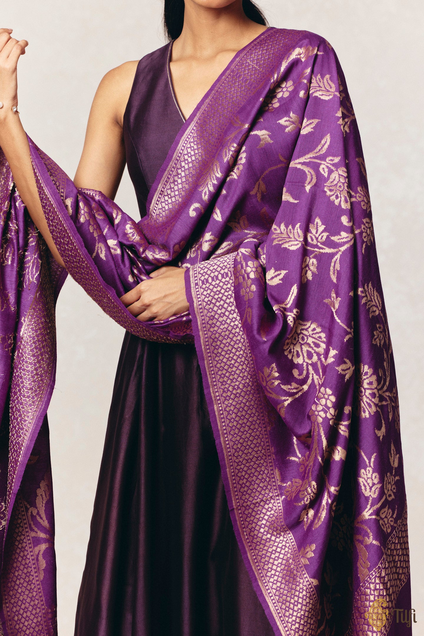 A light and versatile Banarasi dupatta with an all-over pattern of fluid vines and varying floral blossoms handwoven in gold zari.