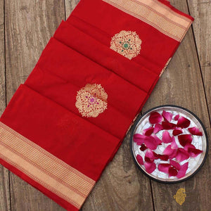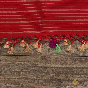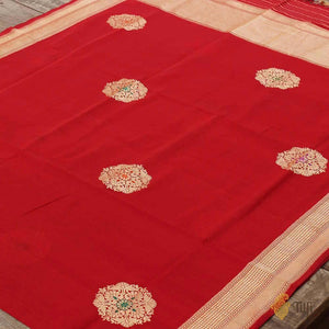 Red Pure Katan Silk Banarasi Handloom Dupatta