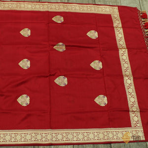 Few things can compare with the poetic beauty of handwoven silks! This is a stunning dupatta with regal Kadhua bootas and shimmering zari. Individually handwoven and intricately patterned motifs with hints of Meenakari makes this a standout piece.