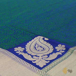 An absolutely charming silken dupatta which is the definition of understated elegance! A delightful floral tanchoi pattern in Teal Green on a bed of Royal Blue and exquisitely crafted corner paisleys in kadhua weave - forever graceful!